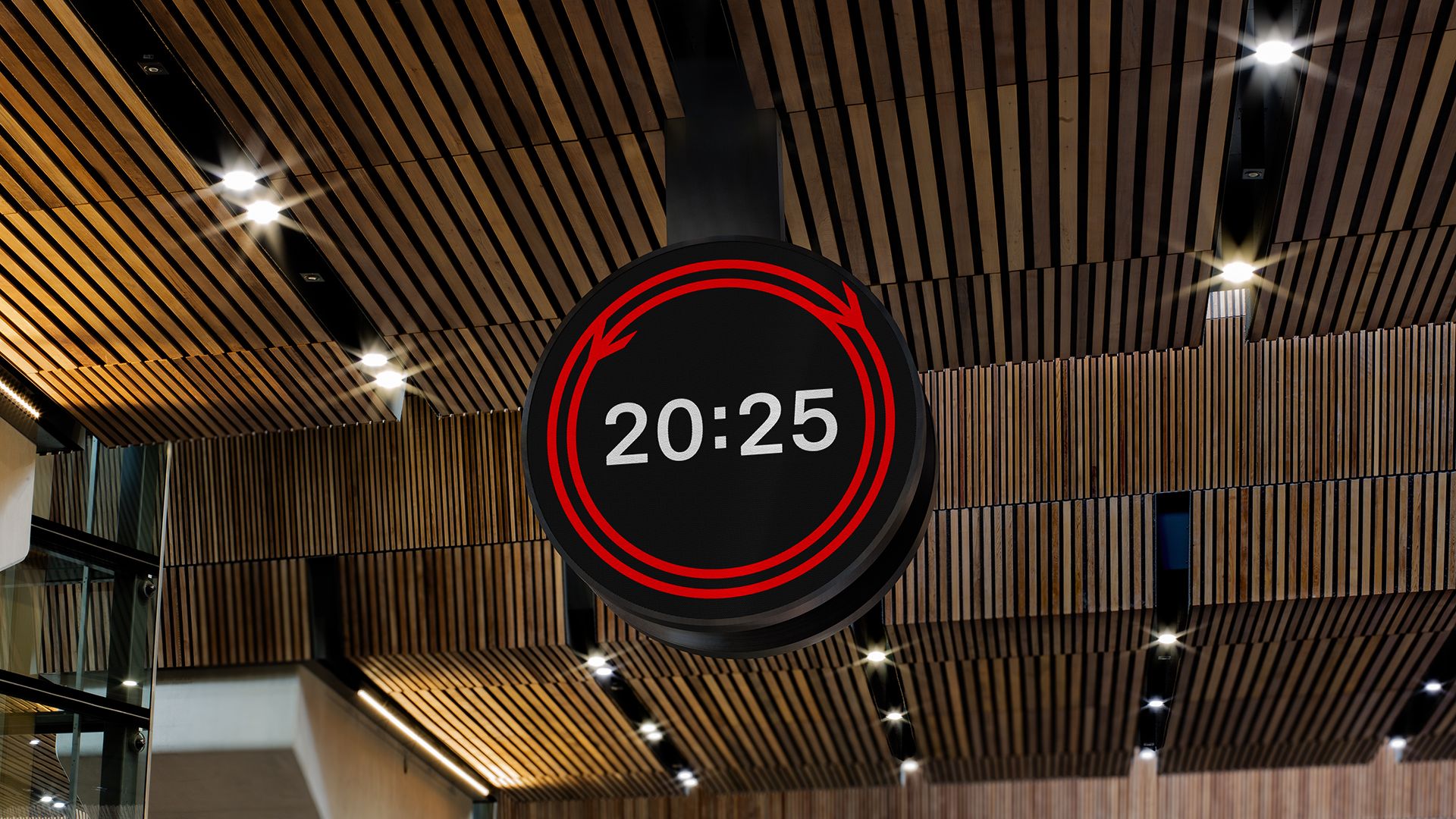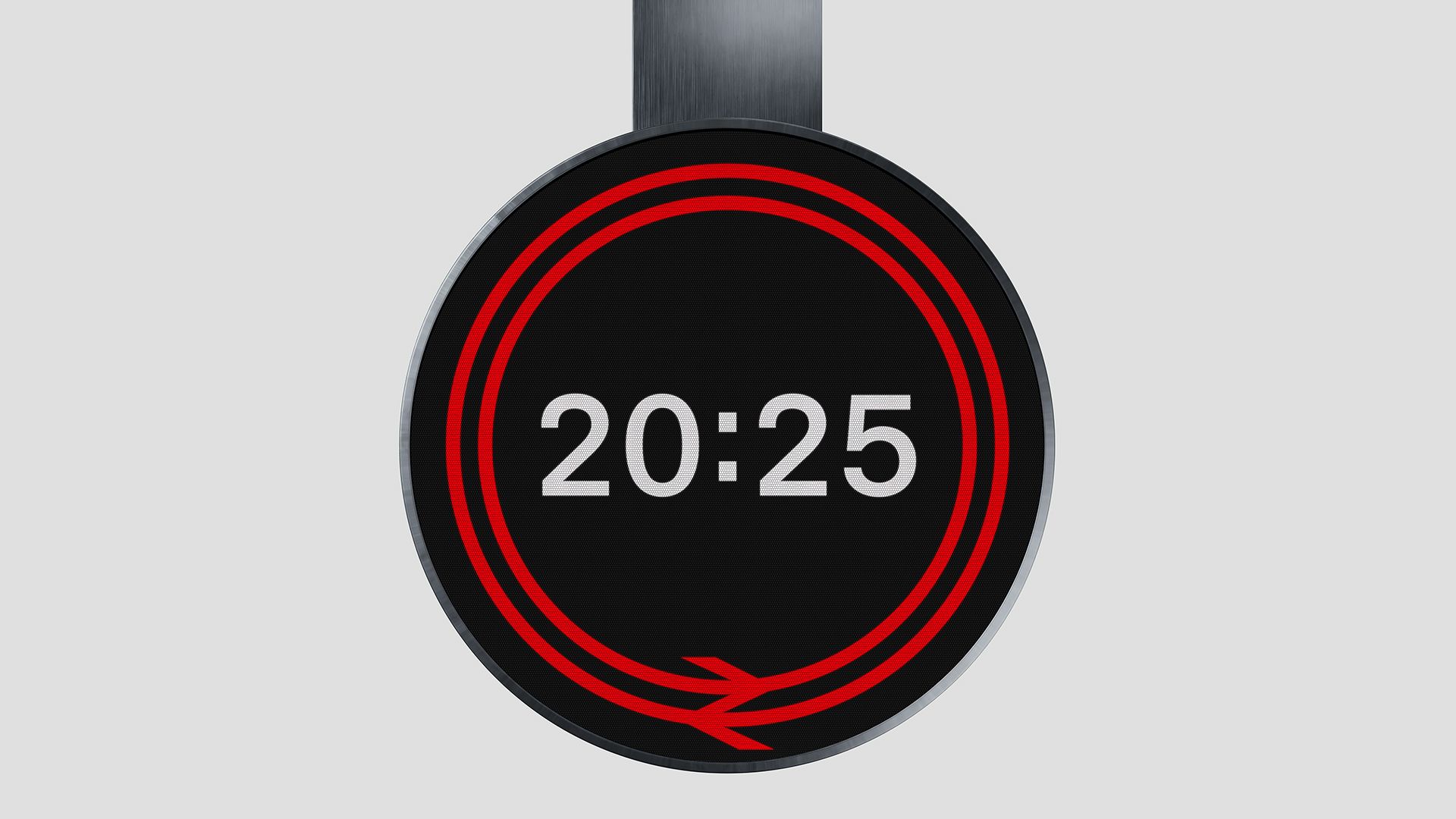 The 1.8 metre timepiece takes inspiration from the timeless graphic symbol of the railway: the iconic double arrow logo, created by Gerry Barney in 1965. The double arrow motif is dynamically integrated into the clock face, with its two halves travelling in opposing directions, converging precisely every 30 seconds. This subtle yet powerful visual metaphor speaks to the constant flow and convergence of journeys.